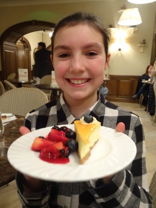 Afternoon teas are very popular but with action-packed days organised we opted for an evening meal. A couple of the kids went for the gloriously British fish and chips while I tucked into a mouth-watering haddock, salmon and prawn gratin with a potato rösti topping. Tim went the whole Swiss hog with the beautifully light bacon rösti smothered in melted raclette cheese.